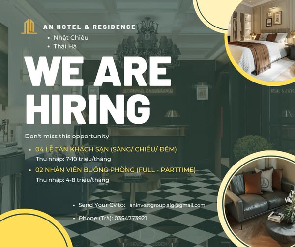 ✨ Nếu bạn yêu thích sự tinh tế, chỉn chu và mong muốn trở thành một phần của trải nghiệm lưu trú đẳng cấp giữa lòng Hà Nội — AN Hotel & Residence chào đón bạn.