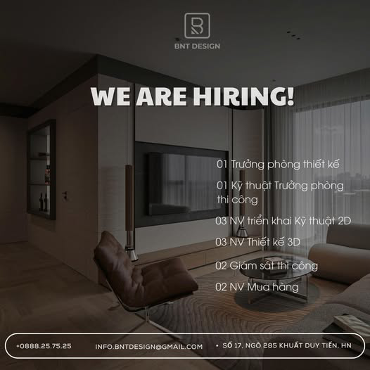 BNT Design thông báo tìm kiếm cộng sự cho các vị trí: