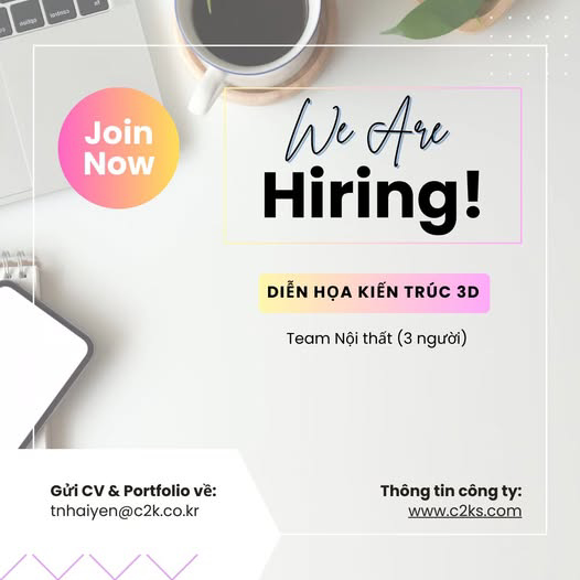 TUYỂN NHÂN VIÊN DIỄN HỌA 3D TEAM NỘI THẤT – CƠ HỘI CHO NGƯỜI KHÔNG KINH NGHIỆM