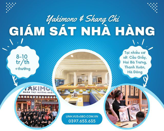 GIÁM SÁT PHỤC VỤ NHÀ HÀNG (8-10 triệu/tháng + thưởng)😍