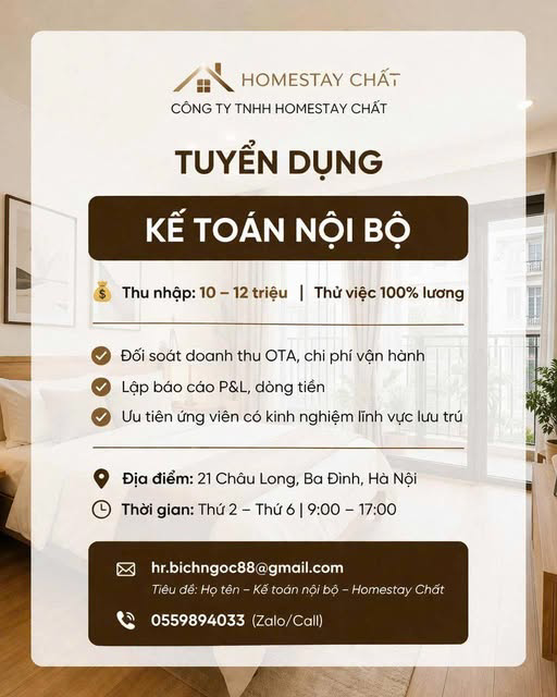 Tiêu đề: Họ tên – Kế toán nội bộ – Homestay Chất