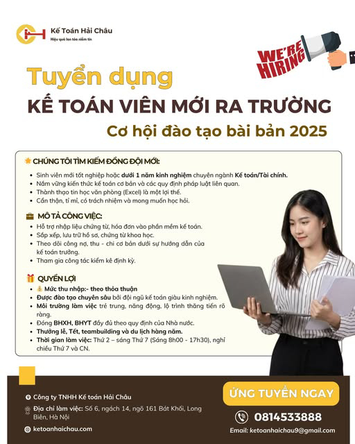 KẾ TOÁN VIÊN MỚI RA TRƯỜNG – CƠ HỘI ĐÀO TẠO BÀI BẢN 2025 🚀