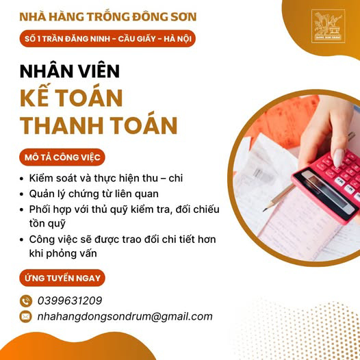 Gia nhập ngay team Dong Son Drum Restaurant để cùng phát triển nhé!