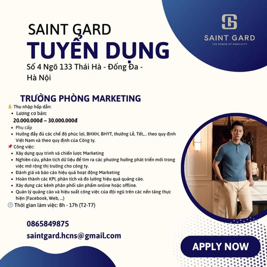 CÔNG TY TNHH SAINT GARD GROUP - TRƯỞNG PHÒNG MARKETING