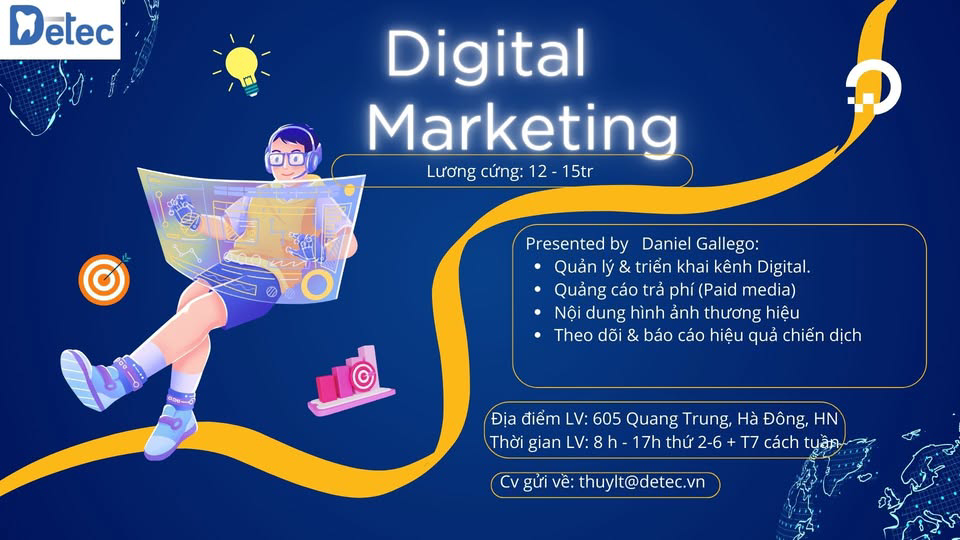 - Quản lý & triển khai các kênh Digital: Website, Facebook, TikTok, YouTube, Zalo…