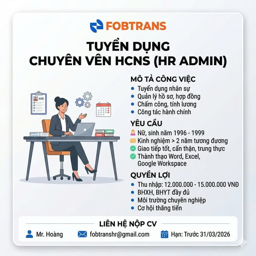 TUYỂN DỤNG CHUYÊN VIÊN HCNS (HR ADMIN) – FOBTRANS