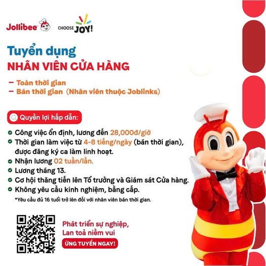 🍔 Không yêu cầu kinh nghiệm, được đào tạo từ A–Z