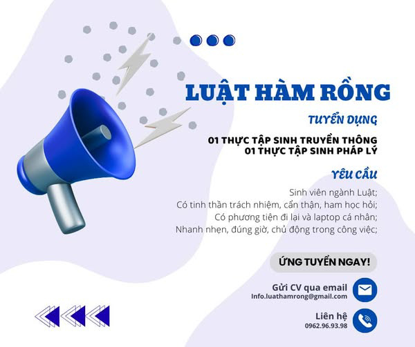 - Hỗ trợ thực hiện các công việc pháp lý cơ bản: Tư vấn, nghiên cứu văn bản pháp luật, soạn thảo hồ sơ tài liệu theo yêu cầu.