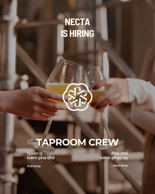 - Quyền lợi: Lương tháng 13, được đào tạo và tiếp xúc môi trường F&B đa dạng (là tệp khách của Necta, môi trường sáng tạo & cởi mở.
