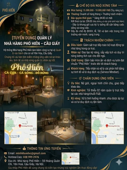 QUẢN LÝ NHÀ HÀNG PHỐ HIẾN – CẦU GIẤY