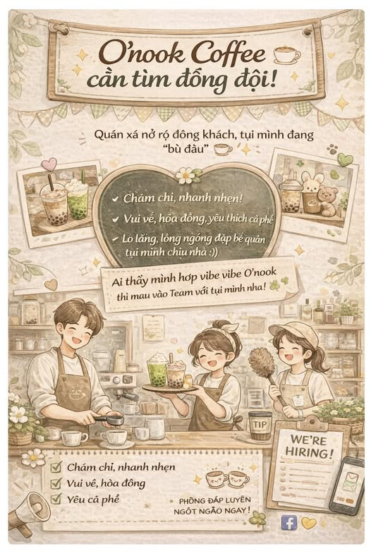 Theo ca : 07-12h; 12-18h, ( có thể xoay ca trong tuần, được đăng ký linh động )