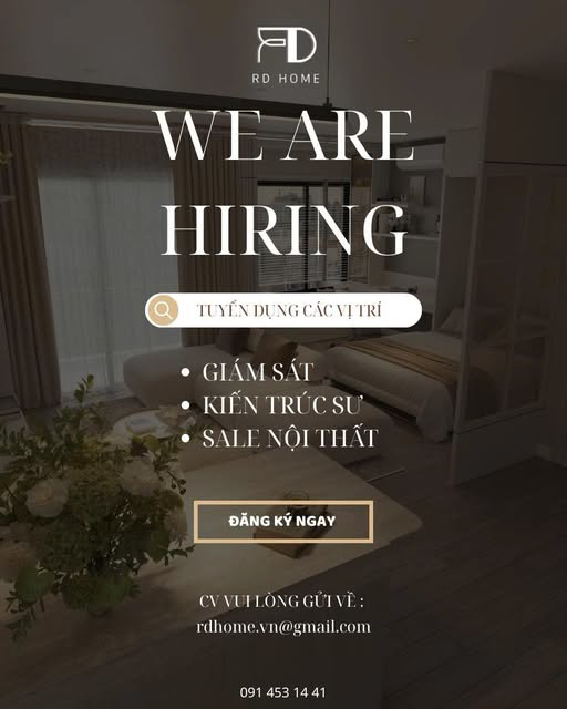 Để hiện thực hóa những dự án đầy cảm hứng trong năm mới, RD HOME – Kiến trúc & Nội thất chính thức tìm kiếm những cộng sự tài năng gia nhập "nhà chung" tại các vị trí: