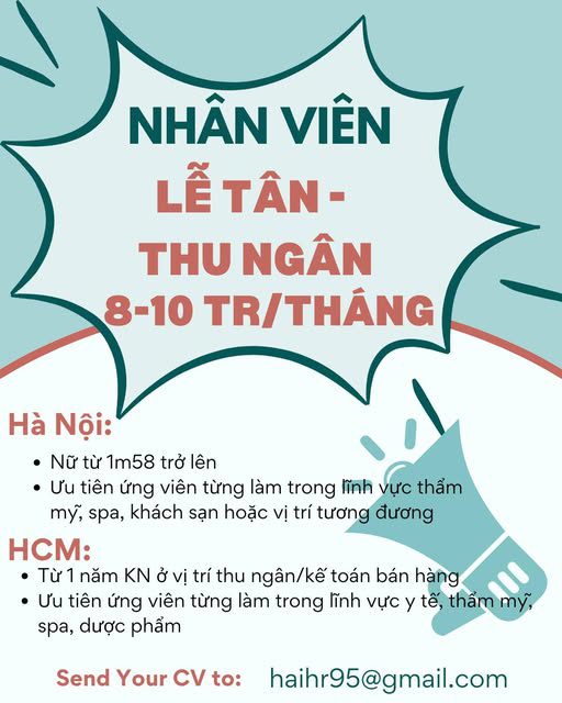 ✅ Yêu cầu: Ngoại hình ưa nhìn, giao tiếp nhẹ nhàng, từ 1m58 trở lên, giọng nói tốt