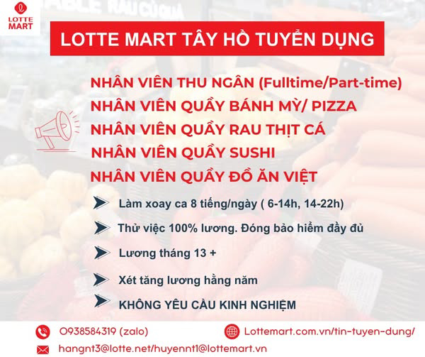 NHÂN VIÊN THU NGÂN ( FULLTIME/ PARTTIME)