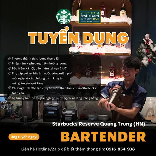 Starbucks Reserve Quang Trung (Hà Nội) - 6A Quang Trung, Hoàn Kiếm - đang tìm kiếm Bartender "có gu" để cùng vào team, ứng tuyển ngay hôm nay!