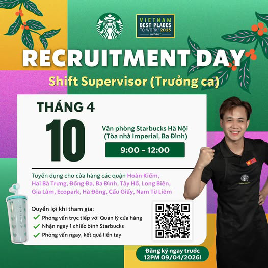 Nhận ngay 1 chiếc bình Starbucks xịn xò khi tham gia phỏng vấn trực tiếp tại văn phòng starbucks hà nội